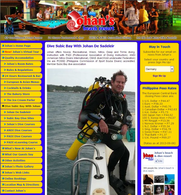 Johan offers Novice, Recreational, Wreck, Nitrox, Deep and Trimix diving. Instruction with PADI (Professional Association of Diving Instructors), ANDI (American Nitrox Divers International), CMAS diver(Wold underwater Federation) We are PCSSD (Philippine Commission of Sport Scuba Divers) accredited. Member Subic Bay dive association.