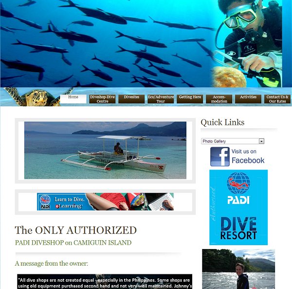 As the only PADI accredited dive centre on Camiguin island, Johnny's Dive 'N' Fun is the most professional and best equipped dive shop-dive centre and eco/adventure tour operator. Only the highest quality, latest model equipment is used in conjunction with experienced local guides and top-notch crew.