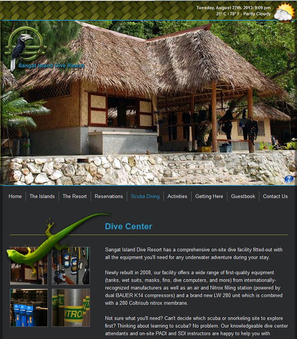 Sangat Island Dive Resort, which opened it's doors to the general public in 1994, occupies quite nearly the entire southwestern cusp of Sangat Island. To date, this perfect little slice of paradise offers our guests fourteen native-styled, ecologically "low-impact" accommodations, restaurant and bar facilities, and an internationally-renowned water sports and scuba diving center.